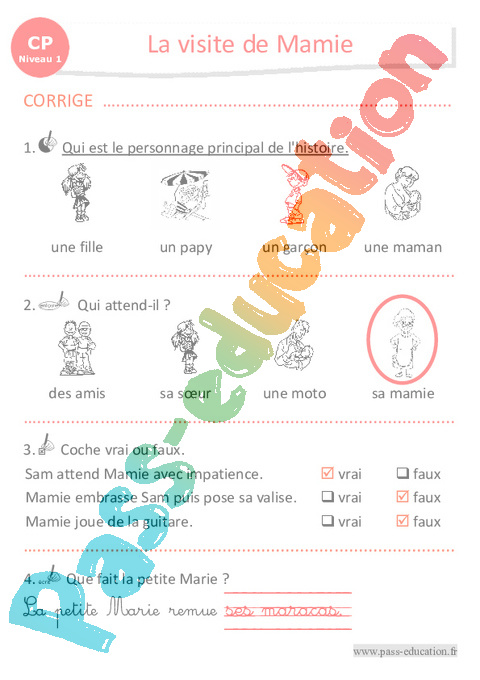 Correction Questionnaire La visite de Mamie : 3eme Harmos pdf