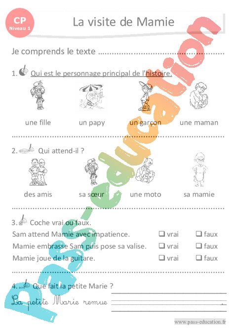 Questionnaire La visite de Mamie : 3eme Harmos pdf