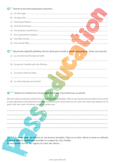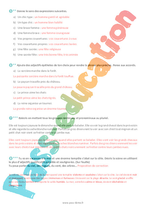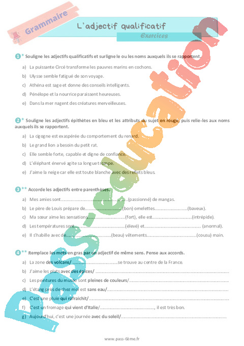 Exercices de grammaire avec la correction sur l’adjectif qualificatif en 6ème.