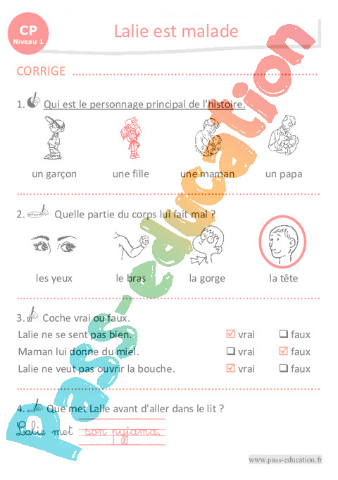 Correction QCM Lalie est malade : 3eme Harmos – Luminéo pdf