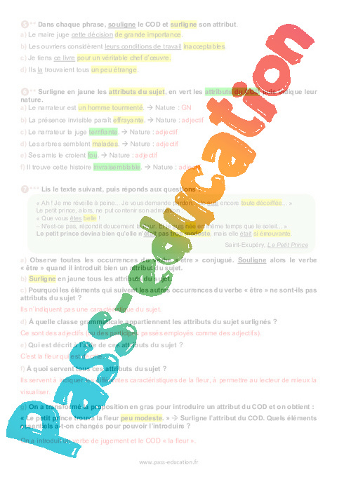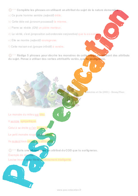 Exercices : 10eme Harmos L’attribut pdf