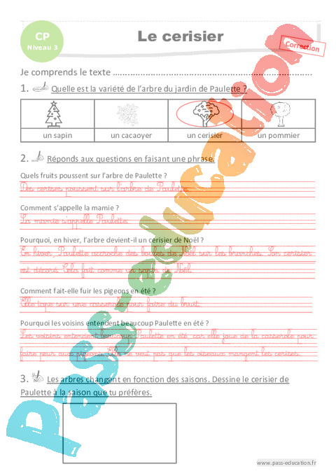 Correction Questionnaire Le cerisier : 3eme Harmos – Luminéo – Niveau 3 pdf