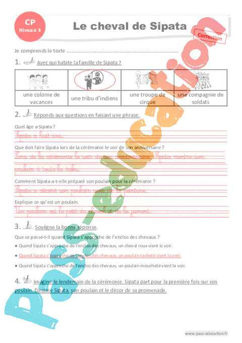 Correction Questionnaire Le cheval de Sipata : 3eme Harmos – Luminéo – Niveau 3 pdf