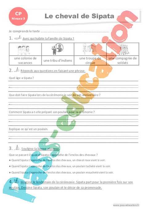 Questionnaire Le cheval de Sipata : 3eme Harmos – Luminéo – Niveau 3 pdf