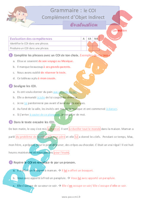 Correction évaluation : 6eme Harmos Le COI complément d’objet indirect pdf