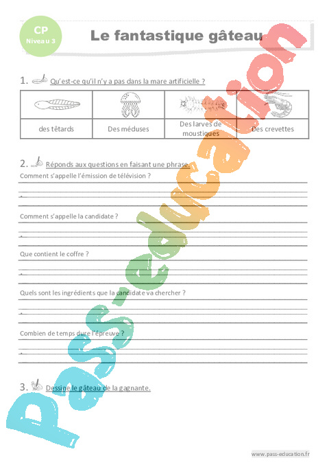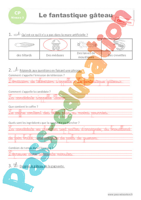 Correction Questionnaire Le fantastique gâteau : 3eme Harmos -Luminéo pdf