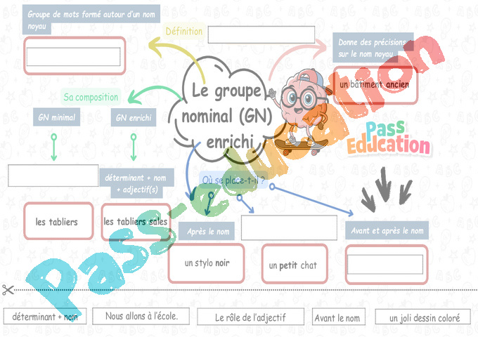 Le groupe nominal avec adjectif – Carte mentale à co – construire : 5ème Harmos – PDF à imprimer