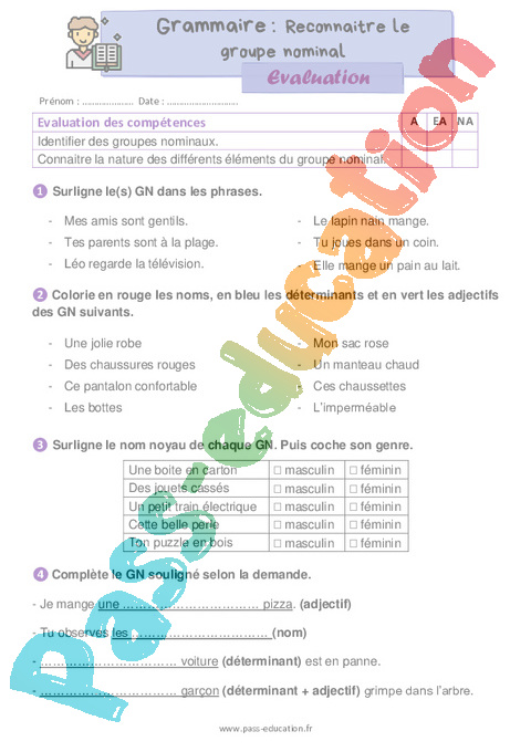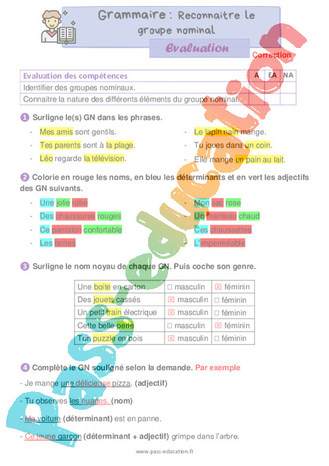 Evaluation Correction : 4eme Harmos Reconnaître le groupe nominal rtf