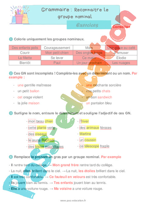 Exercices Correction : 4eme Harmos Reconnaître le groupe nominal pdf