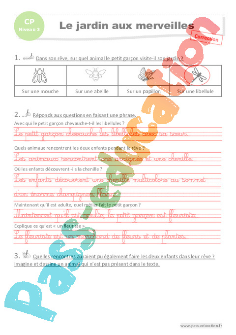 Correction Questionnaire Lecture Le jardin aux merveilles : 3eme Harmos – Luminéo pdf