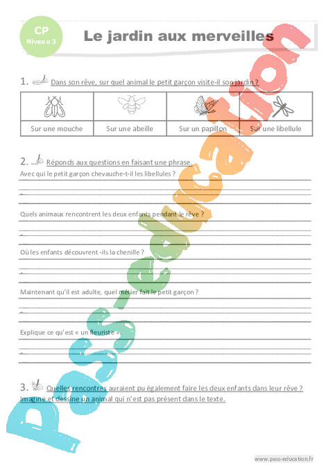 Questionnaire Lecture Le jardin aux merveilles : 3eme Harmos – Luminéo pdf