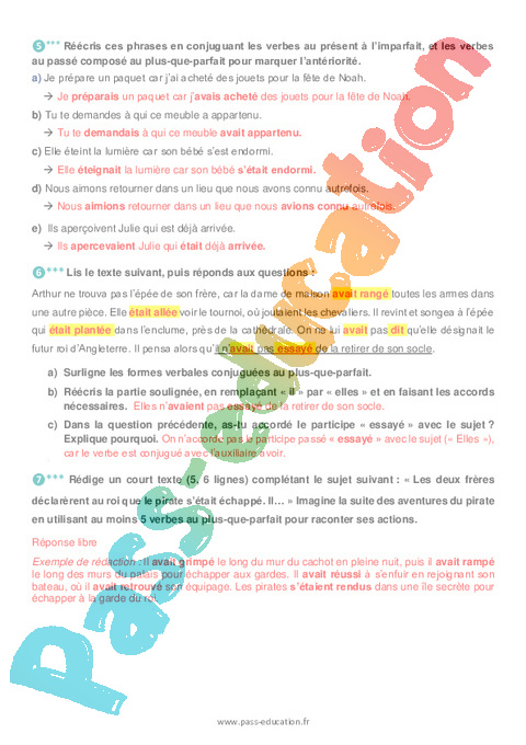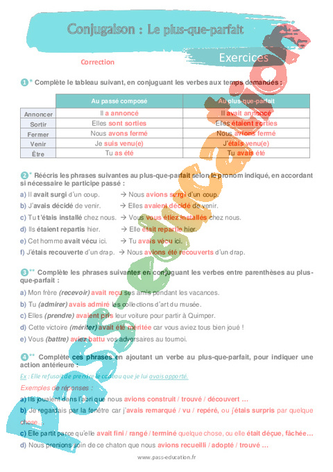 Exercices : 9eme Harmos Le plus-que-parfait pdf