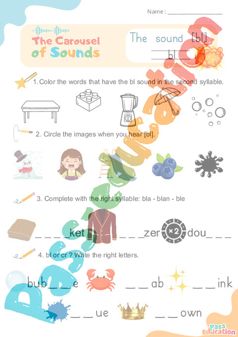 Son [bl] bl – Phonologie anglaise – Carousel of Sounds – Fiche pdf