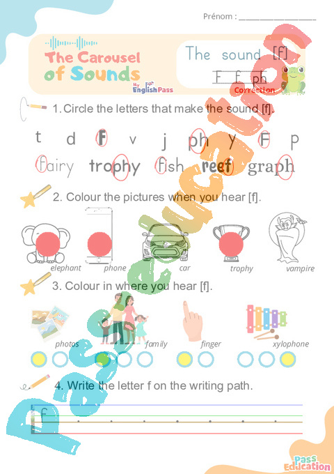 Correction Le son [f] f ph – Phonologie anglaise – Carousel of Sounds – Fiche pdf