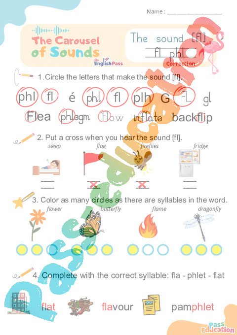 Correction [fl] fl phl – Phonologie anglaise – Carousel of Sounds – Fiche pdf