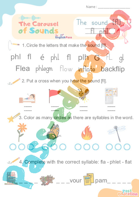 Son [fl] fl phl – Phonologie anglaise – Carousel of Sounds – Fiche pdf