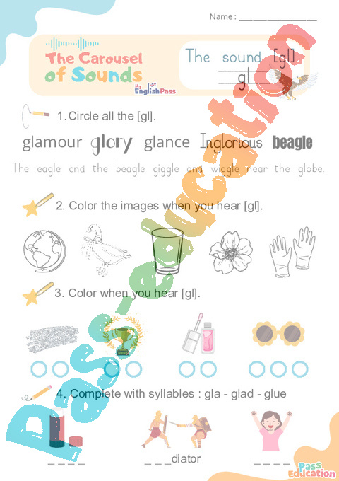 Correction [gl] gl – Phonologie anglaise – Carousel of Sounds – Fiche pdf