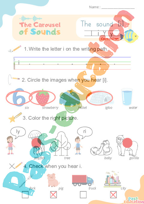 Correction Le son [i] y – Phonologie anglaise – Carousel of Sounds – Fiche pdf