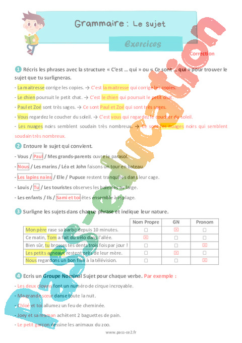 Surligne les sujets dans chaque phrase et indique leur nature.