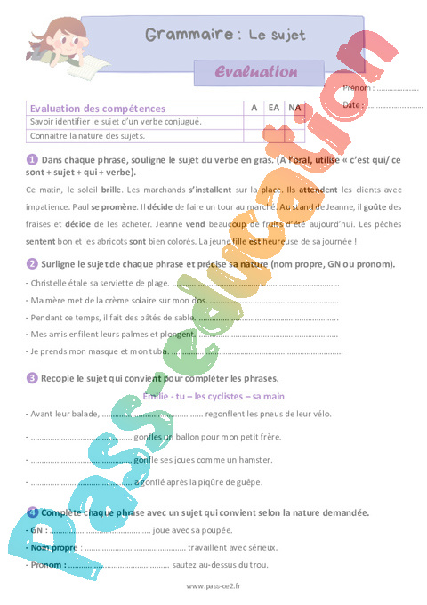 Évaluation de grammaire pour la 5eme Harmos sur le sujet.