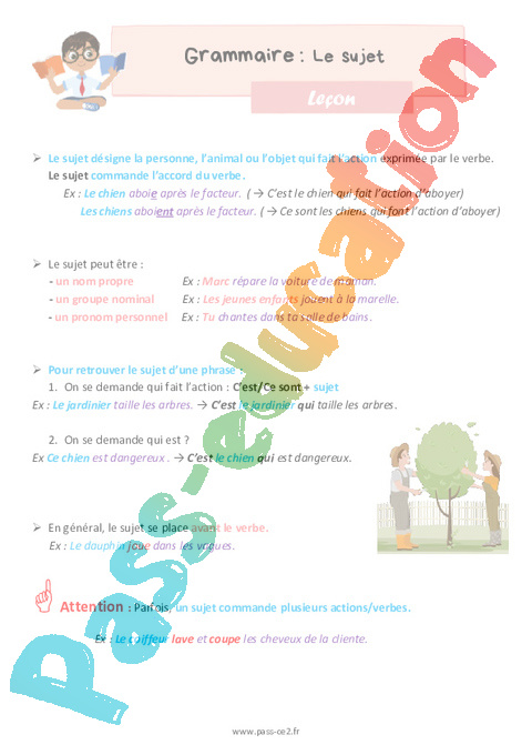 Leçon Le sujet : 5eme Harmos pdf