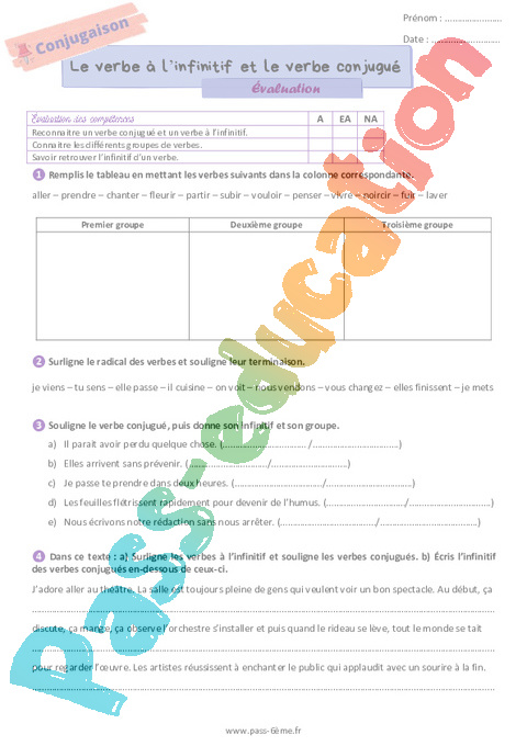 Evaluation Le verbe à l’infinitif et le verbe conjugué 6ème rtf