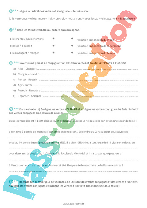 Exercices Le verbe à l’infinitif et le verbe conjugué 6ème pdf