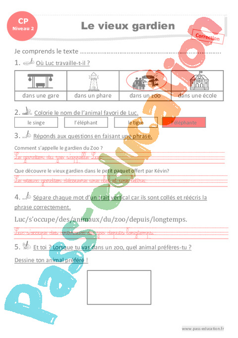 Correction Questionnaire Le vieux gardien : 3eme Harmos  – Luminéo – Niveau 2 pdf