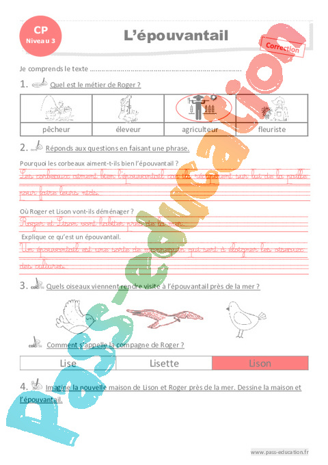 Correction Questionnaire L’épouvantail : 3eme Harmos Luminéo – Niveau 3 pdf