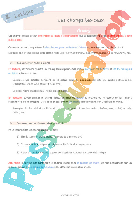 Cours de vocabulaire sur les champs lexicaux en 6ème.