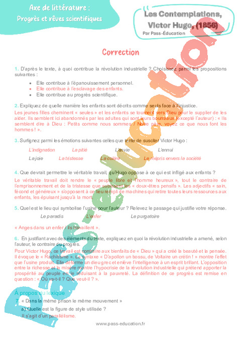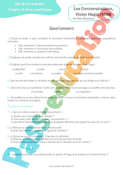 Correction Questionnaire Les Contemplations (Victor Hugo) : 11eme Harmos pdf