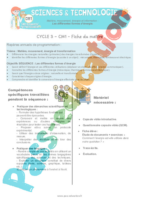 1 Fiche de préparation Les différentes formes d’énergie : 6eme Harmos pdf