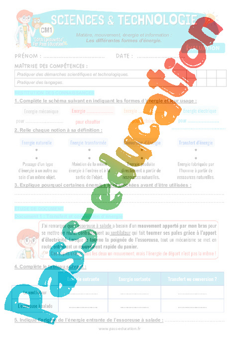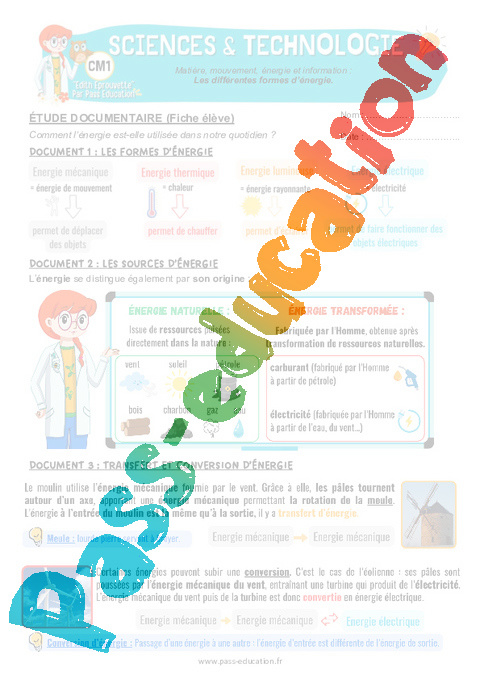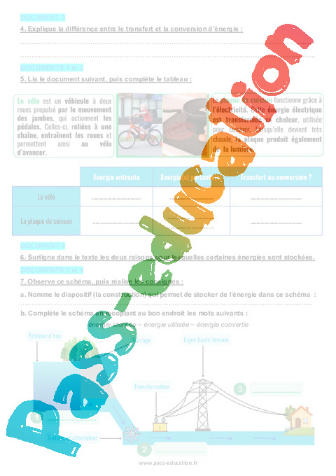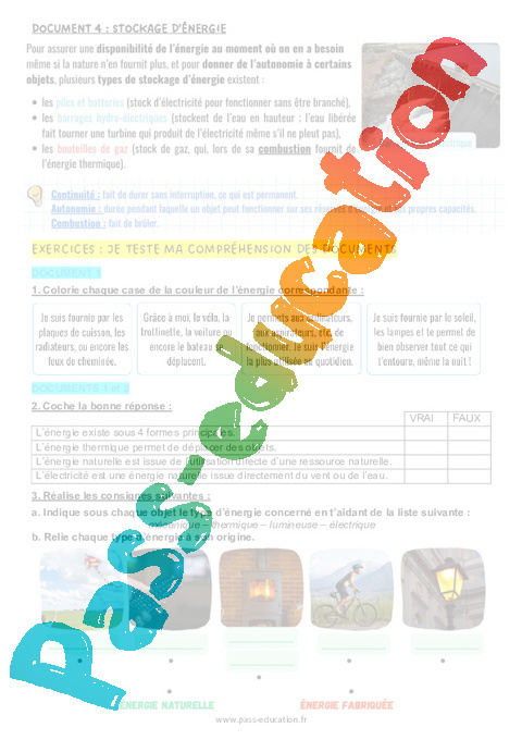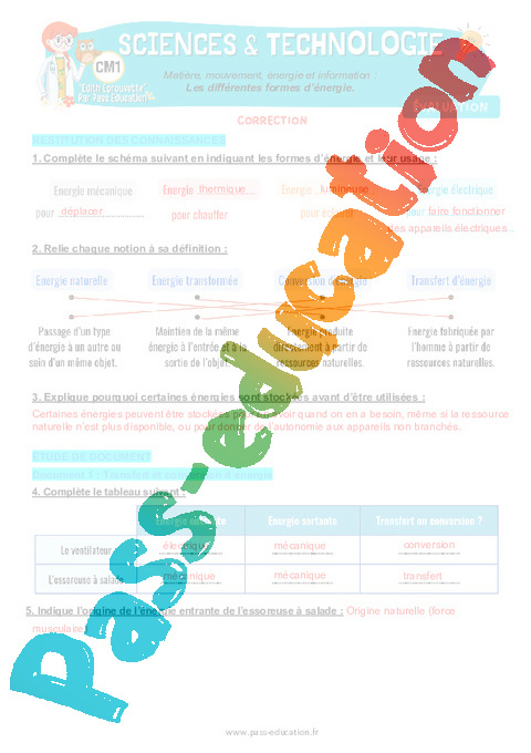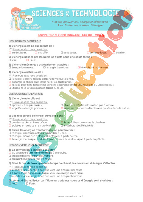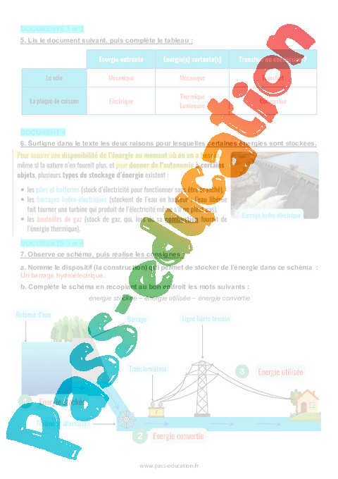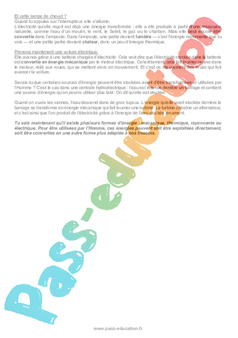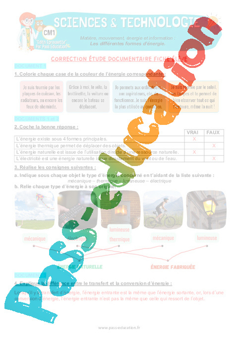 4.1 Correction Fiche Elève : 6eme Harmos Les différentes formes d'énergie pdf