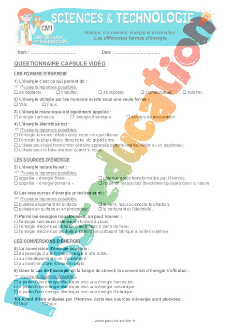 3 QCM capsule vidéo : 6eme Harmos Les différentes formes d’énergie pdf