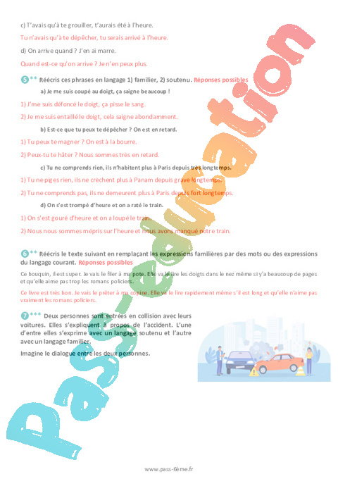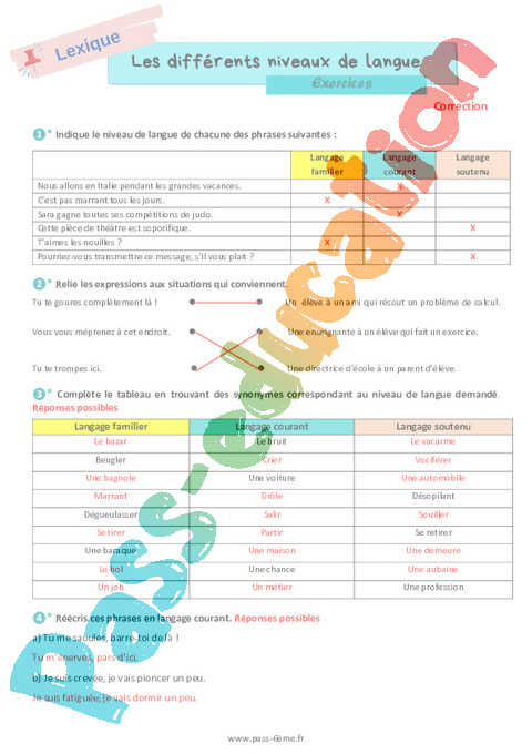 Correction Exercices 6ème Les différents niveaux de langue pdf