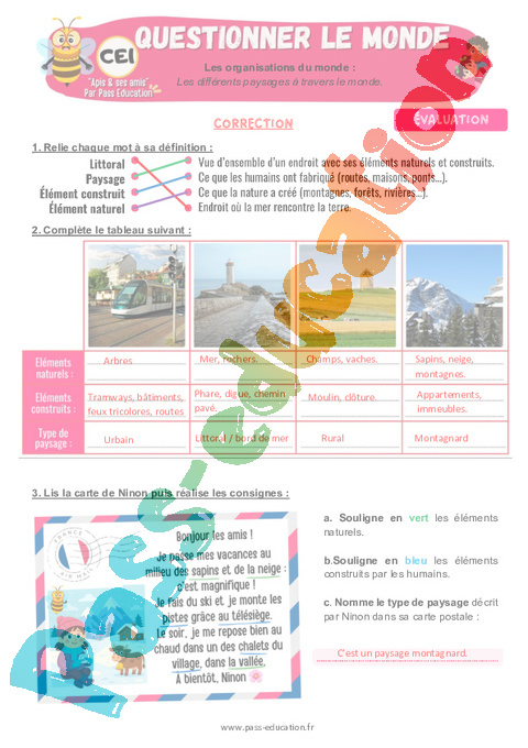 6.1 Correction Evaluation : 4eme Harmos Les différents paysages à travers le monde pdf
