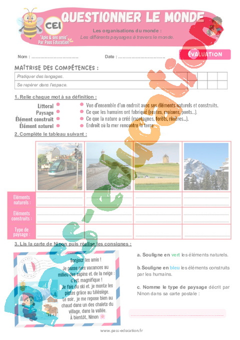 Evaluation – Les différents paysages à travers le monde : 4eme Harmos – Séquence + vidéo – Apis & ses amis.