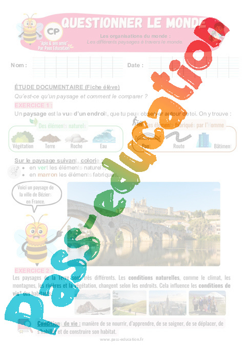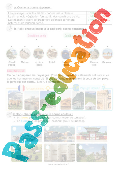Exercices – Les différents paysages à travers le monde : 3eme Harmos – Apis & ses amis.