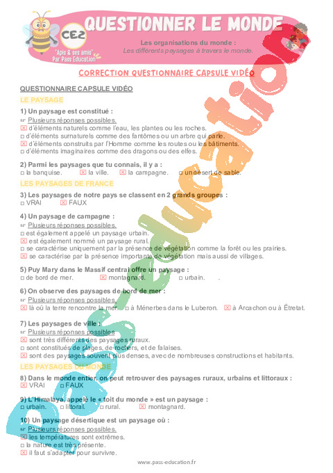 3.1 Correction QCM capsule vidéo : 5eme Harmos Les différents paysages à travers le monde pdf