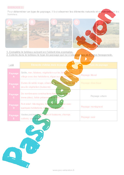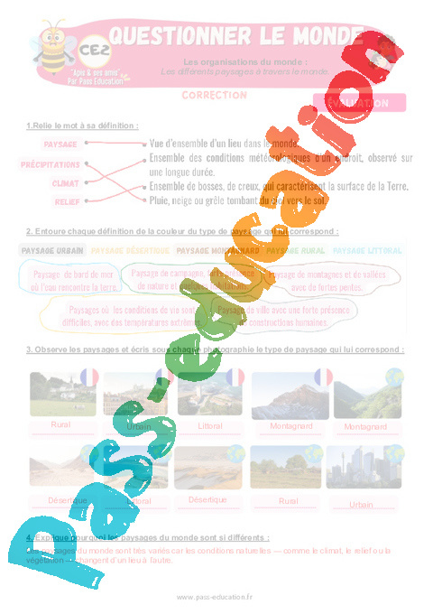 4.1 Correction Fiche Elève : 5eme Harmos Les différents paysages à travers le monde pdf