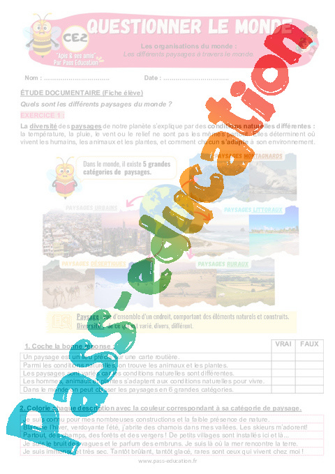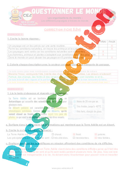 4.1 Correction Fiche Elève : 5eme Harmos Les différents paysages à travers le monde rtf
