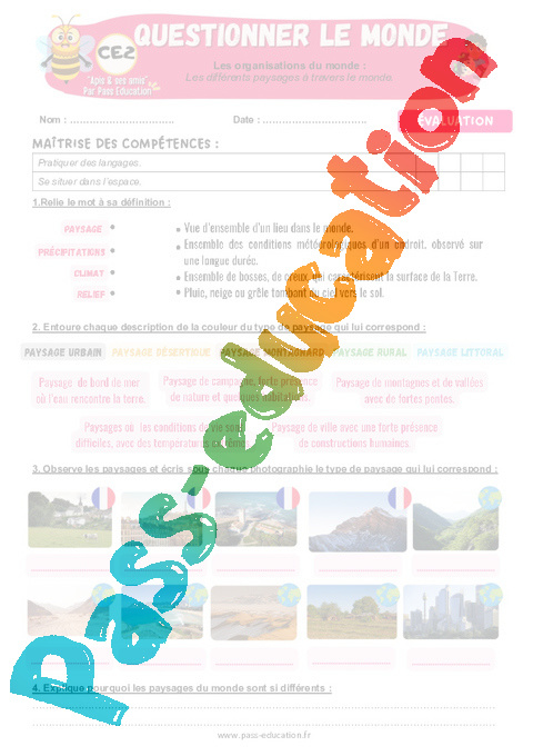 6 Evaluation : 5eme Harmos Les différents paysages à travers le monde pdf
