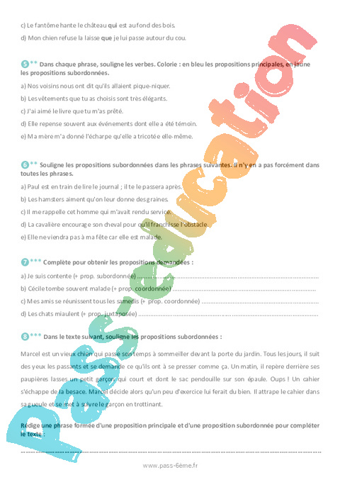 Exercices Les différents types de phrases complexes 6ème pdf