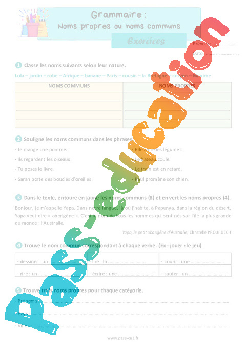 Exercices Les noms communs et noms propres : 4eme Harmos rtf