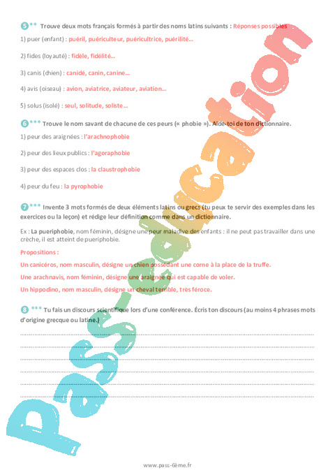 Correction Les racines latines et grecques en français – Exercices de vocabulaire 6ème pdf
