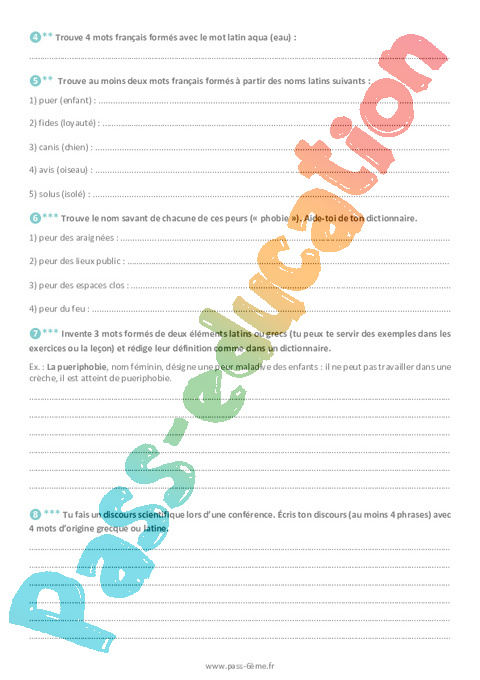 Les racines latines et grecques en français – Exercices de vocabulaire 6ème pdf