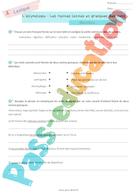 Les racines latines et grecques en français – Exercices de vocabulaire 6ème rtf