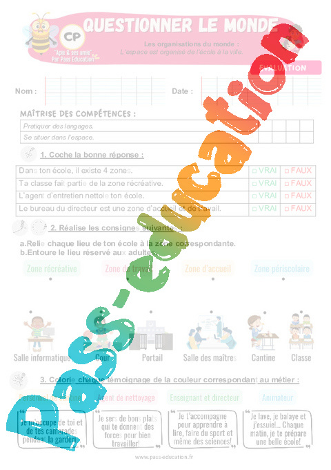 Evaluation – L’espace est organisé de l’école à la ville en 3eme Harmos – Apis & ses amis : Questionner le monde.
