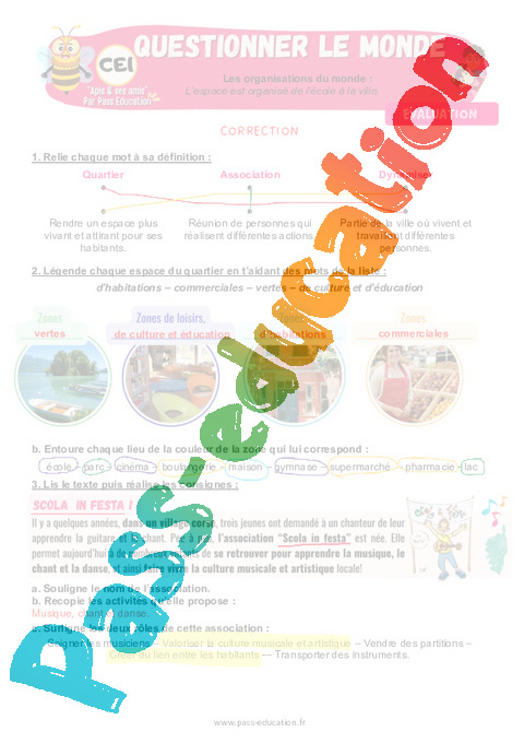 6.1 Correction Evaluation : 4eme Harmos L’espace est organisé de l’école à la ville pdf