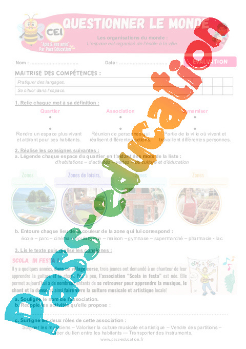 6 Evaluation : 4eme Harmos L’espace est organisé de l’école à la ville pdf